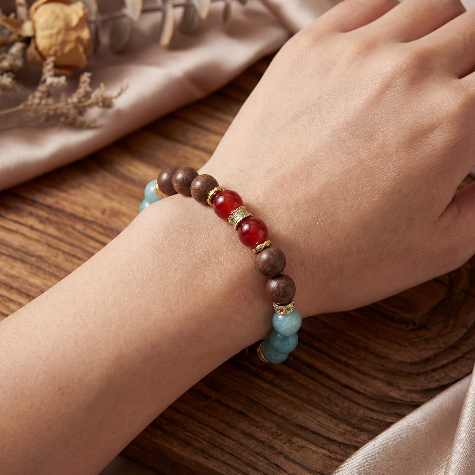 Emotional Equilibrium: When feeling agitated, angry, or anxious, bring the bracelet close to your nose. Take several deep breaths. First, notice the cool clarity of Borneol, then the sweet comfort of Osmanthus, and finally settle into the depth of Agarwood. This completes a quick “calm-rebellion, soothe, return-to-source” emotional adjustment.